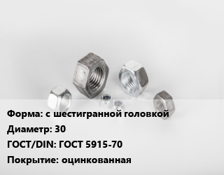 Гайка с шестигранной головкой D=30 ГОСТ 5915-70 оцинкованная