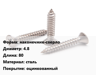 Саморез наконечник-сверло D=4.8 L=80 сталь оцинкованный, шт, кровельный, для дерева цена от 3.37 ₽ / кг, где купить, условия доставки в Перми и Пермской области