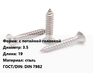 Саморез с потайной головкой D=3.5 L=19 сталь ГОСТ: DIN 7982