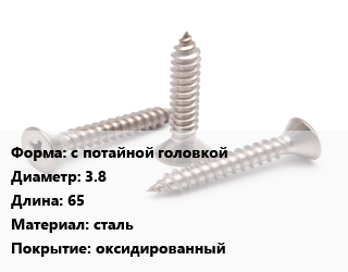 Саморез с потайной головкой D=3.8 L=65 сталь оксидированный