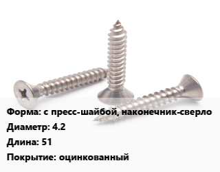 Саморез с пресс-шайбой, наконечник-сверло D=4.2 L=51 оцинкованный