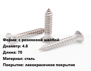Саморез с резиновой шайбой D=4.8 L=70 сталь лакокрасочное покрытие, шт, для кровельных материалов цена от 3.24 ₽ / кг, где купить, условия доставки в Перми и Пермской области