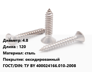Саморез 4.8 L=120 сталь оксидированный ГОСТ: ТУ BY 400024166.010-2008