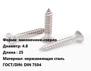 Саморез наконечник-сверло D=4.8 L=25 нержавеющая сталь ГОСТ: DIN 7504, шт цена от 9.43 ₽ / кг, где купить, условия доставки в Перми и Пермской области