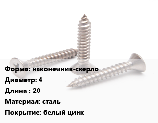 Саморез наконечник-сверло D=4 L=20 сталь белый цинк, упаковка 17000 шт цена от 2 813 ₽ / кг, где купить, условия доставки в Перми и Пермской области