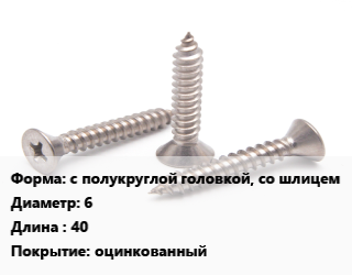 Саморез с полукруглой головкой, со шлицем D=6 L=40 оцинкованный, кг цена от 883.38 ₽ / кг, где купить, условия доставки в Перми и Пермской области