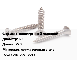 Саморез с шестигранной головкой D=6.3 L=220 нержавеющая сталь ГОСТ: ART 9057, упаковка 550 шт цена от 3 232 ₽ / кг, где купить, условия доставки в Перми и Пермской области