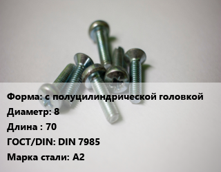 Винт с полуцилиндрической головкой 8х70 DIN 7985 Сталь: А2