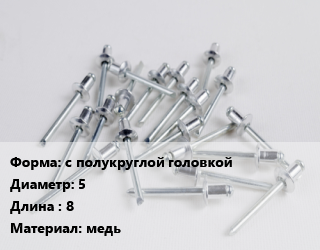 Заклепка с полукруглой головкой 5х8 медь, упаковка 100 шт цена от 173.36 ₽ / шт, где купить, условия доставки в Перми и Пермской области