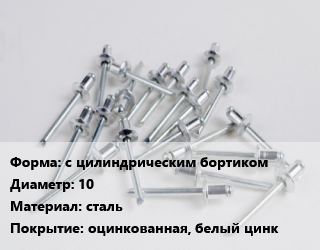 Заклепка с цилиндрическим бортиком 10 сталь оцинкованная, белый цинк