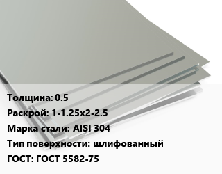 Лист нержавеющий 0.5 1-1.25х2-2.5 Сталь: AISI 304 Тип:шлифованный ГОСТ 5582-75