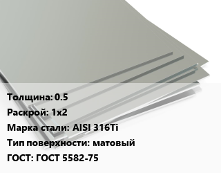 Лист нержавеющий 0.5 1х2 Сталь: AISI 316Ti Тип:матовый ГОСТ 5582-75, х/к, по запросу цена от 729 292 ₽ / т, где купить, условия доставки в Перми и Пермской области