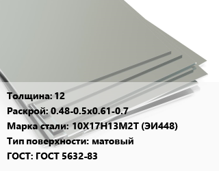Лист нержавеющий 12 0.48-0.5х0.61-0.7 Сталь: 10Х17Н13М2Т (ЭИ448) Тип:матовый ГОСТ 5632-83