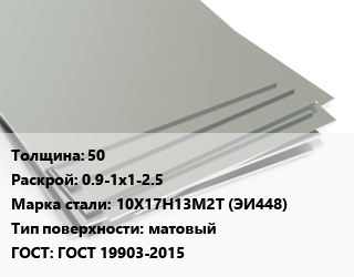 Лист нержавеющий 50 0.9-1х1-2.5 Сталь: 10Х17Н13М2Т (ЭИ448) Тип:матовый ГОСТ 19903-2015